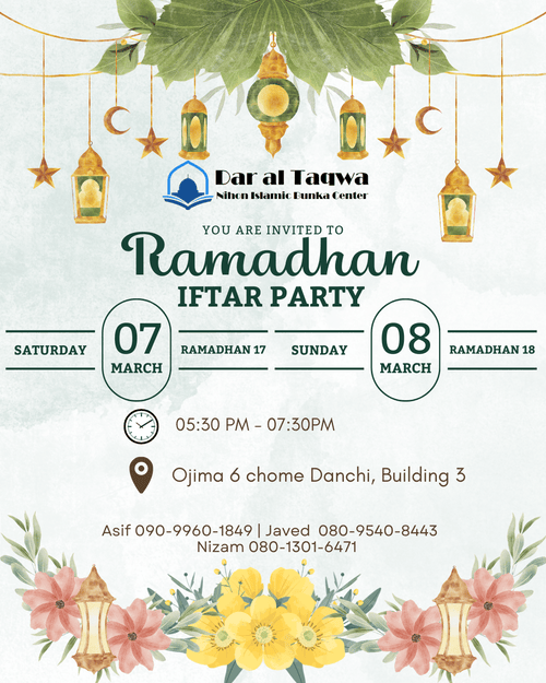 You are warmly invited to join us for a special Iftar Gathering as we break our fast together in the blessed month of Ramadan.