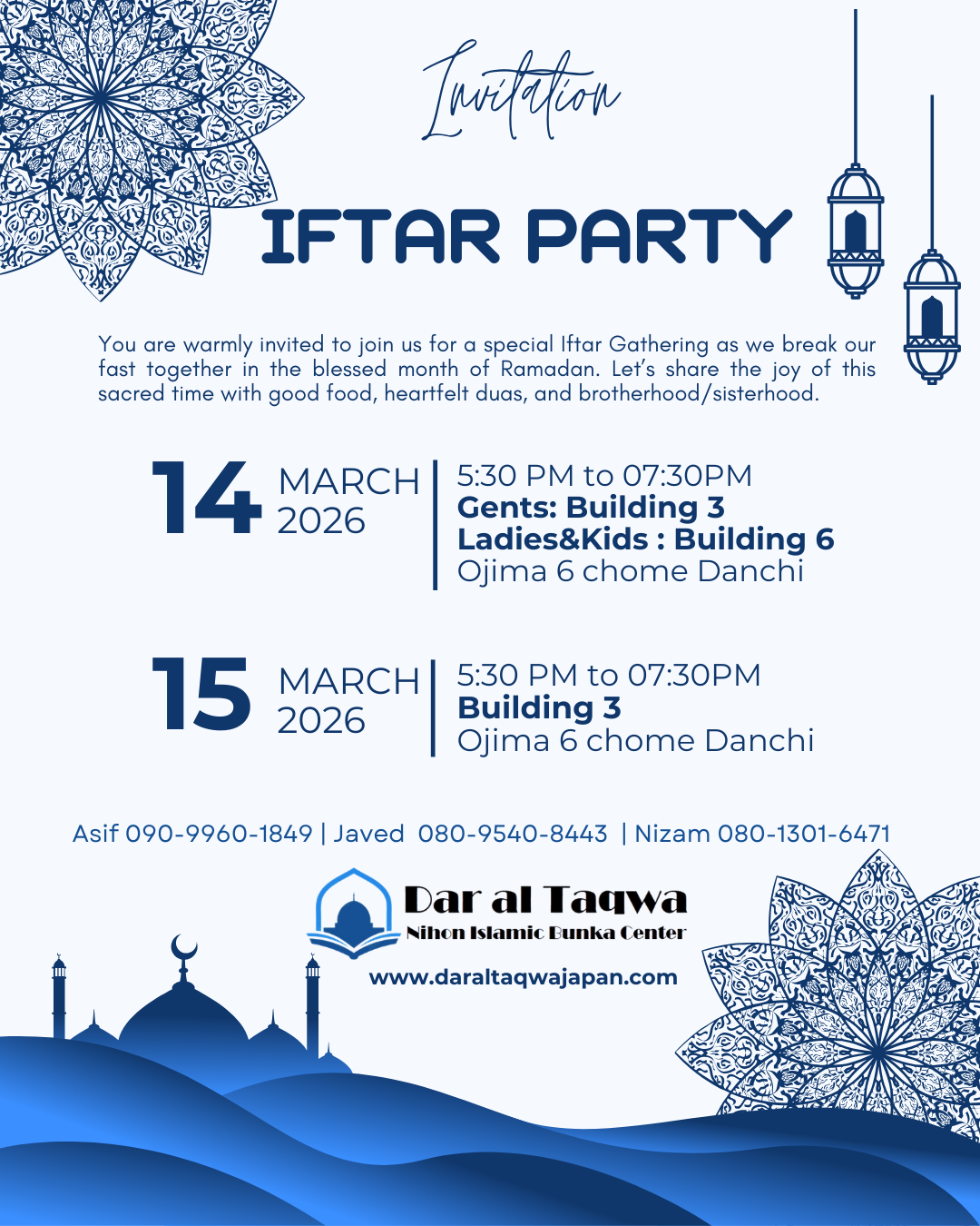 You are warmly invited to join us for a special Iftar Gathering as we break our fast together in the blessed month of Ramadan.